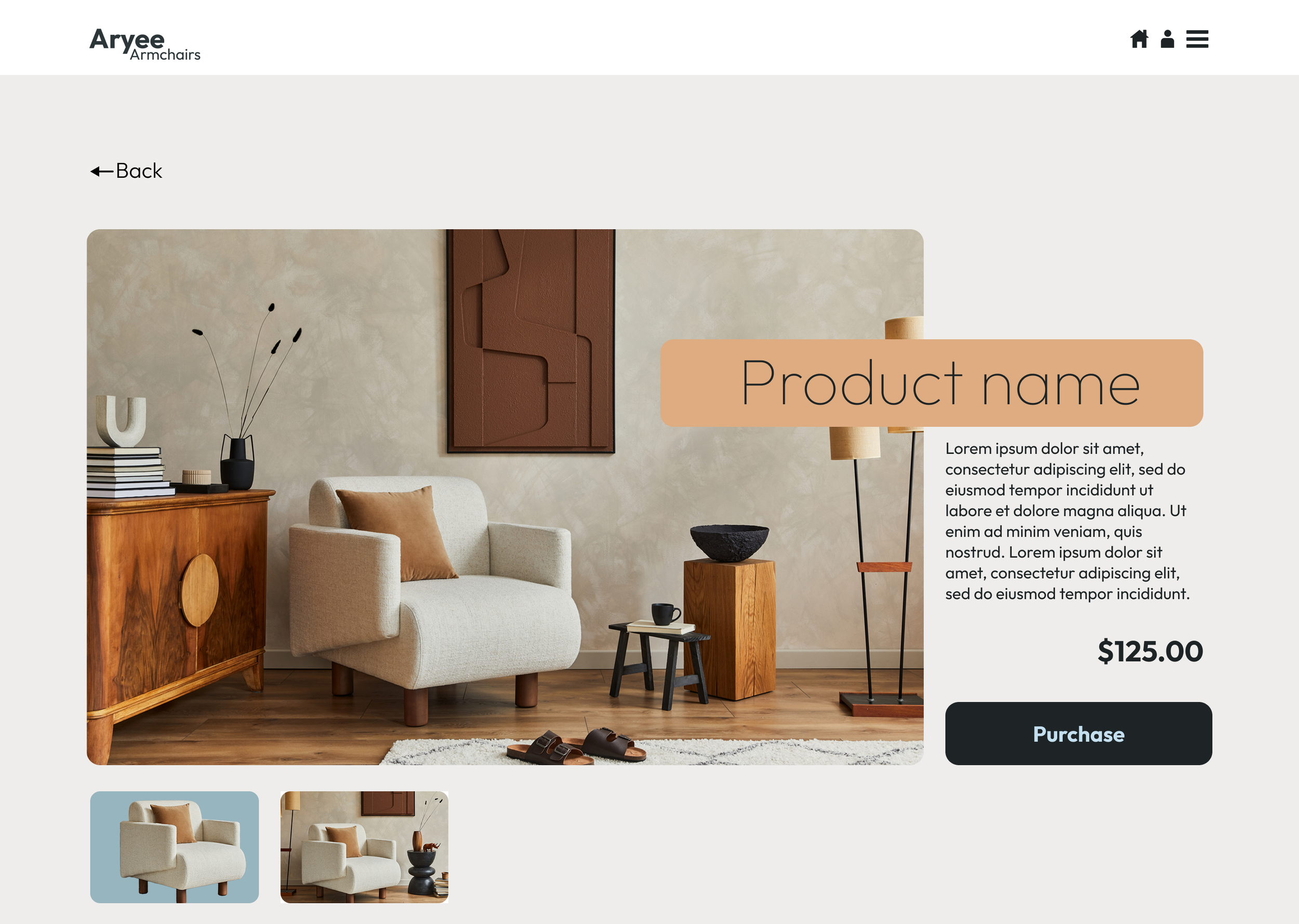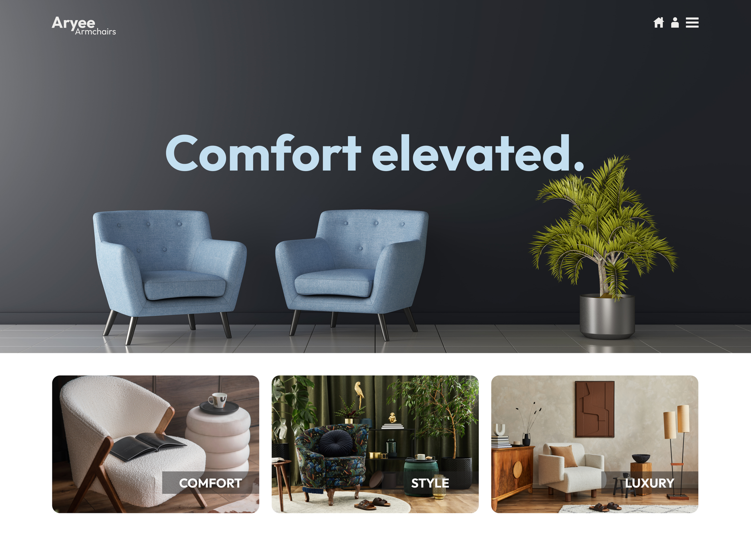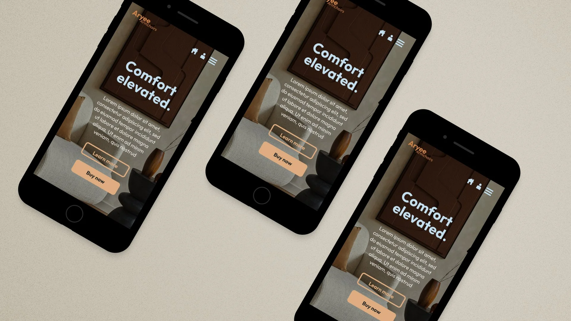 This document provides a conceptual mockup of a website and mobile app designed specifically for consumers in their 30s. The platform features a carefully selected range of high-quality, affordable armchairs, aiming to combine comfort with modern design. Its goal is to create an accessible online destination where people can find exceptional seating solutions that improve their living environments without compromising their budget.